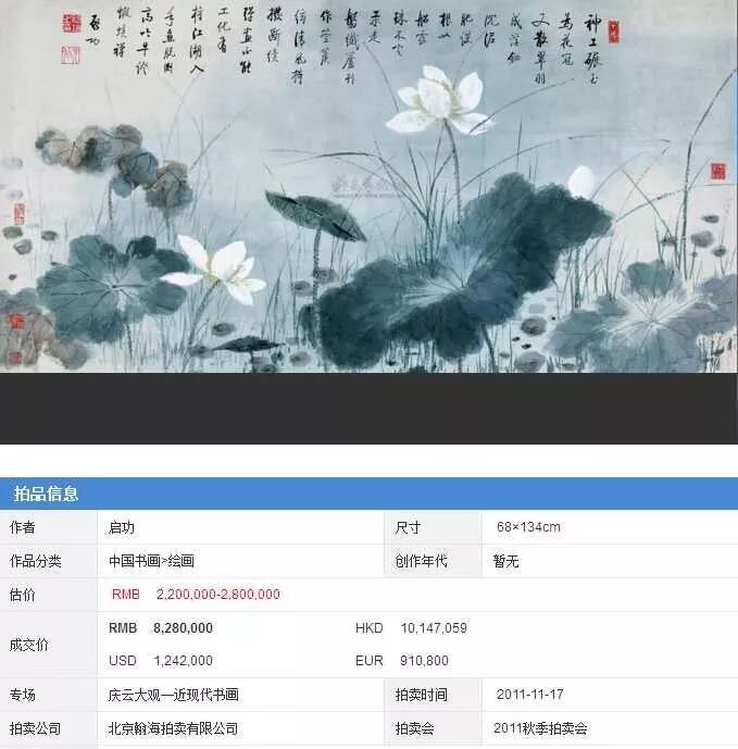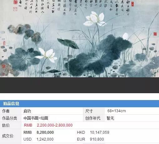 因为启功一生淡泊名利,而且他本人在字画方面的造诣,所以每每当启功老先生的作品出现在拍卖会上的时候,都成为众多藏家的抢手之物。