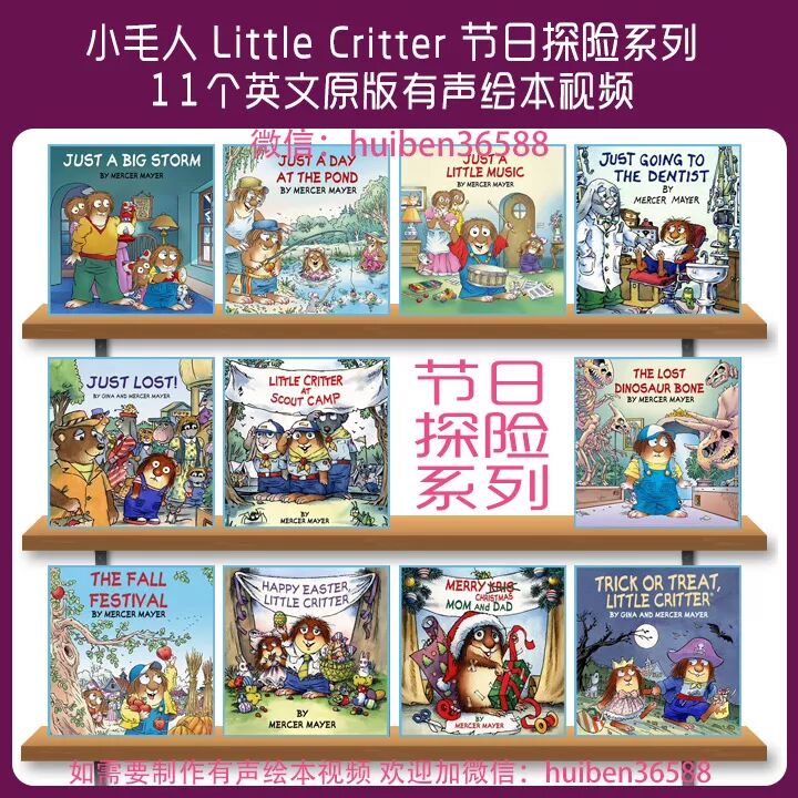 从简单的一句话的情商类的认知绘本到每页有个两三句话的故事性强点的绘本,小毛人Little Critter系列都全。