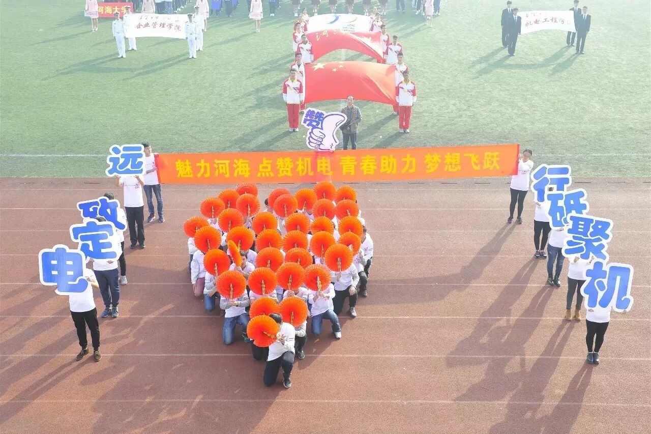 “机聚砥行,电定致远”,机电院14级代表队摆出了心的造型,感恩河海,同时为青春点赞,为赛场不懈的奋斗精神喝彩。