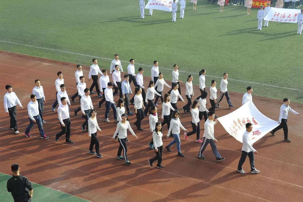 小提琴奏响河海大学校歌。伴随着琴音,企管院15级代表队在操场掀起股股浪花。三十年,他们斗志昂扬,赛场争先。