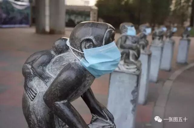 ——摄影师不知道不知何时何人石猴被戴上口罩,但奇了怪了,他知道这是在“严重的雾霾对人类与动物造成伤害”。