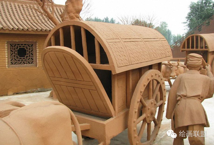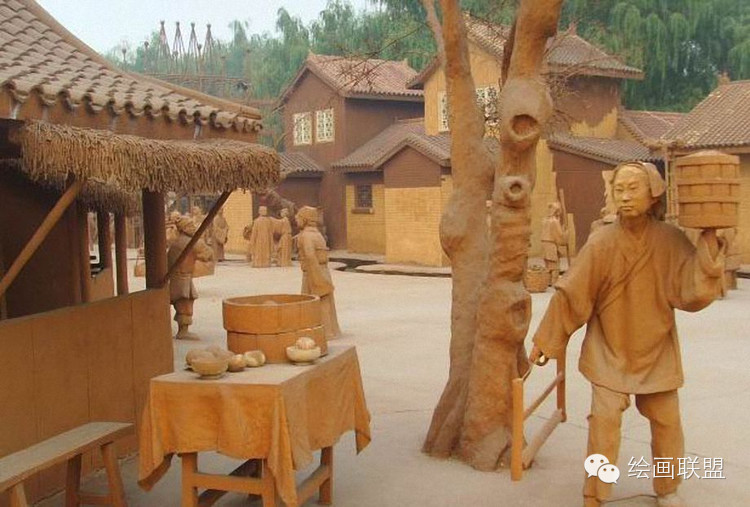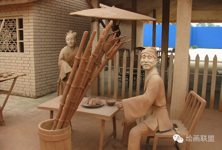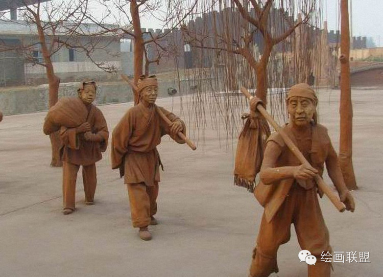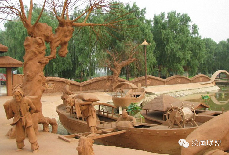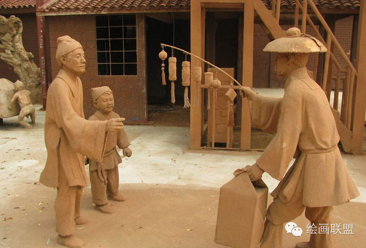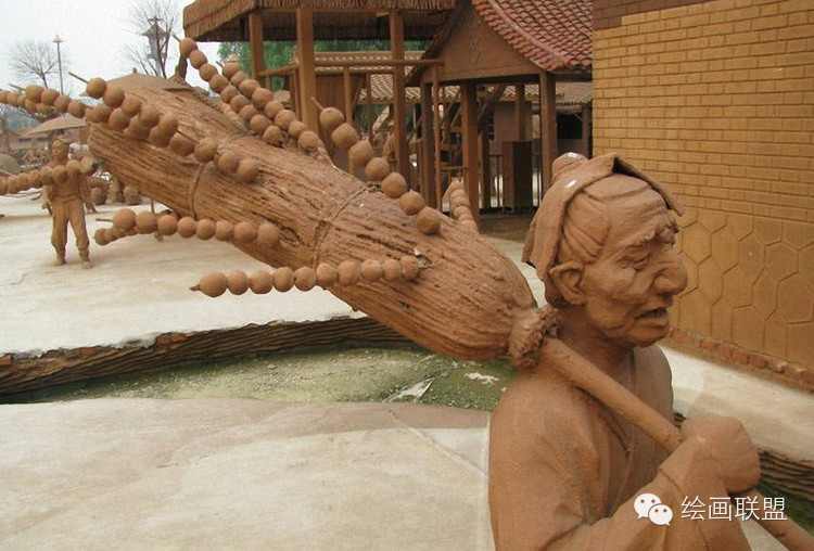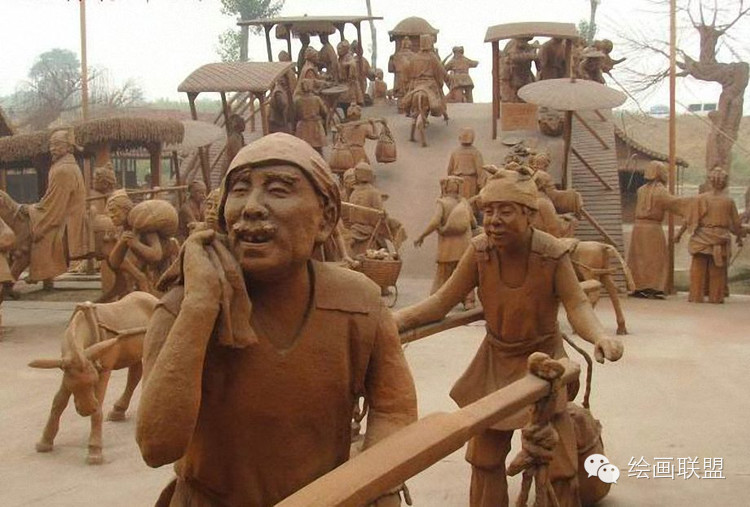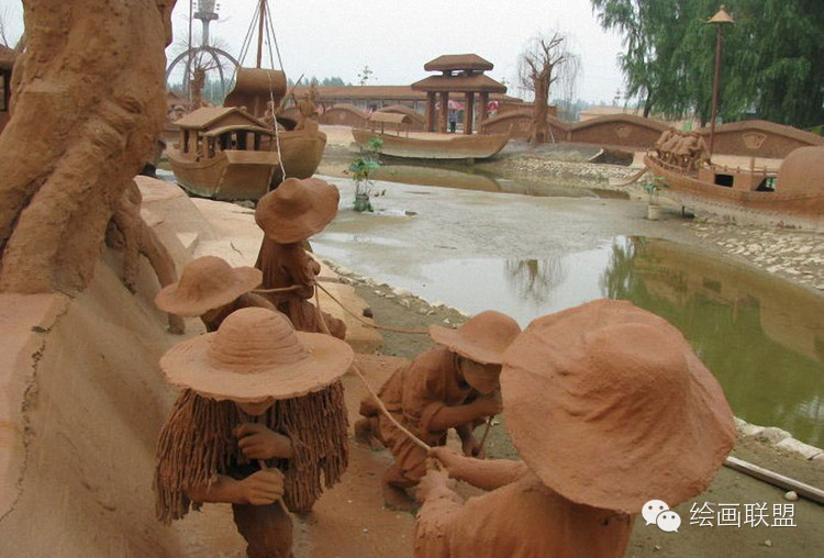 据介绍,这些雕塑用的就是普通泥,只是从构思到成形,需要经过搭建钢筋骨架、堆泥、塑形、修饰、做防雨防晒处理等几道工序。而在各式各样的作品中,人物的形象是最难把握的。“画中的人物男女老幼皆有,衣着形象不同,表情神态各异,传神之处关键在五官,尤其是眼和嘴。其次是手和服饰的质感,比如穿什么样的衣服,走路时会出现什么程度的衣褶;头巾、衣衫被风吹起部分的长短、薄厚都有讲究,一定要尽量贴近实际,才能给人以真实生动的感觉。这样即便是速度最快的工人,做一个泥塑人物也要四天左右的时间。”