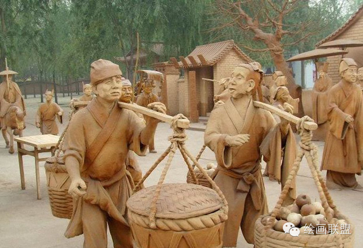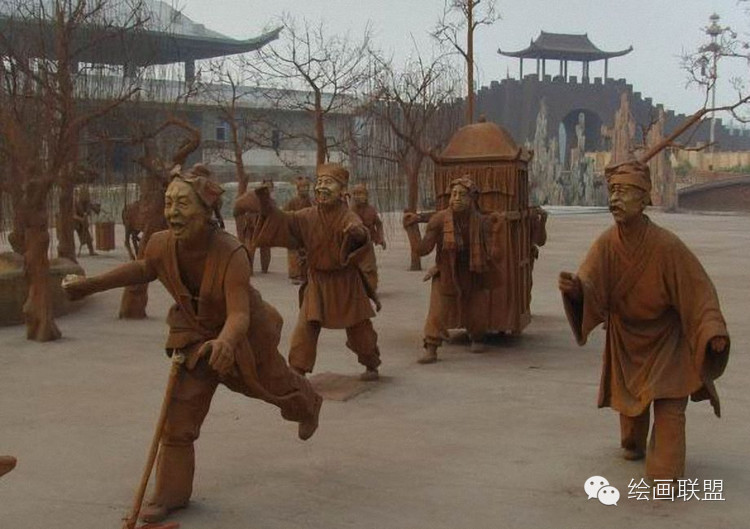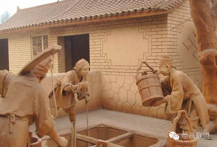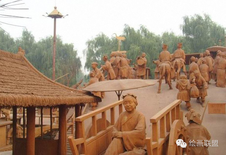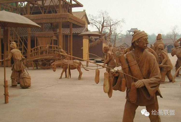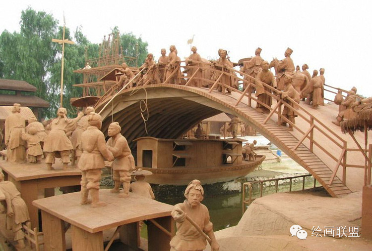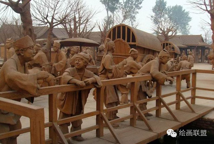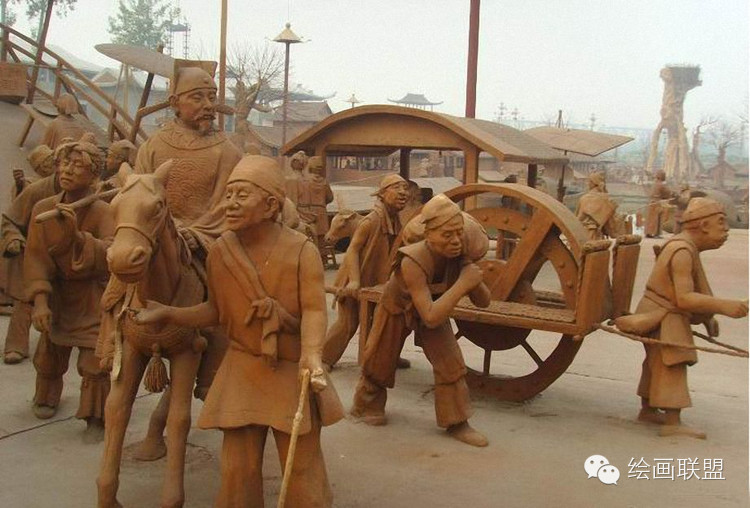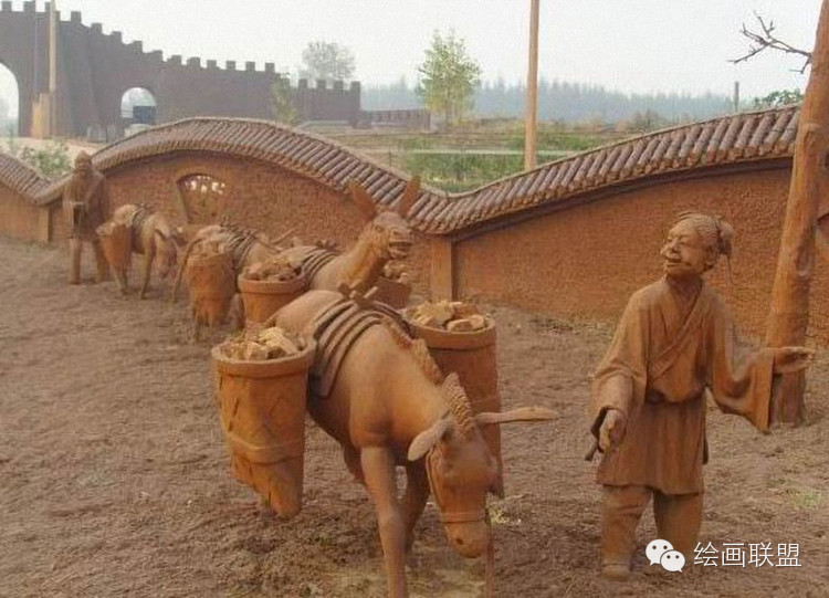 据介绍,这些雕塑用的就是普通泥,只是从构思到成形,需要经过搭建钢筋骨架、堆泥、塑形、修饰、做防雨防晒处理等几道工序。而在各式各样的作品中,人物的形象是最难把握的。“画中的人物男女老幼皆有,衣着形象不同,表情神态各异,传神之处关键在五官,尤其是眼和嘴。其次是手和服饰的质感,比如穿什么样的衣服,走路时会出现什么程度的衣褶;头巾、衣衫被风吹起部分的长短、薄厚都有讲究,一定要尽量贴近实际,才能给人以真实生动的感觉。这样即便是速度最快的工人,做一个泥塑人物也要四天左右的时间。”