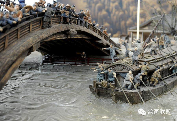 据介绍,雕塑中的所有人物身高,都是按照实际生活中人们正常身高的三分之二比例来设计的,所有房屋、漕船等物体的大小,也是按照这一比例推算出来的。因此越是接近实际尺寸,越能减少人们置身其中与之“互动”的距离感,增添“画中游”的真实感。