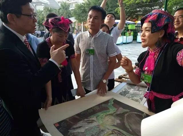 △ 蒋艺鸿的传承工作得到认可,、时任海南省委书记罗保铭等一行人参观了海南苗族发绣展厅