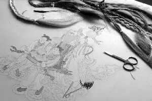 △ 这些头发就是作画的主要原料,每一组头发都有编号,想知道它们的蜕变结果,头发的主人带着编号前去查询即可。