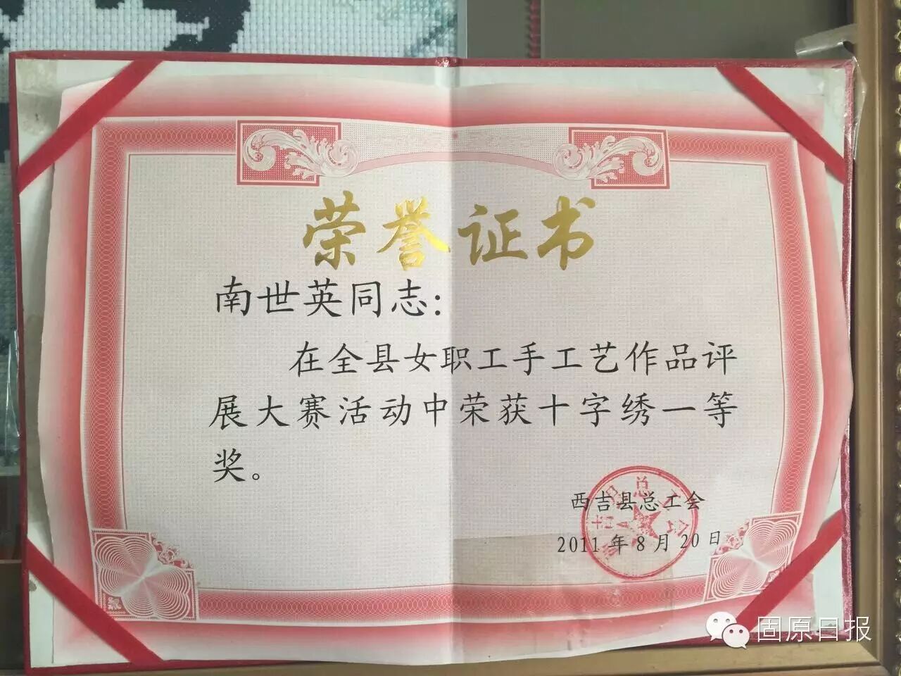 忙惯了的南世英坐不住,开始学着做十字绣。从小绣花鞋、鞋垫到大幅作品,一发不可收。近年来,仅两米以上的绣品就有十几件,牡丹、八骏图、诗词、中堂……每幅作品,老人都精益求精,直到自己满意为止。去年4月,南世英突发奇想,要绣个6米长的“清明上河图”,问了好几家卖十字绣的商店,都没有这么长的。老人便打电话到兰州厂家定做,1个月后才收到货。南世英的儿媳告诉笔者,“清明上河图”绣了11个月,每天要绣10个小时以上,常常忘记吃饭。