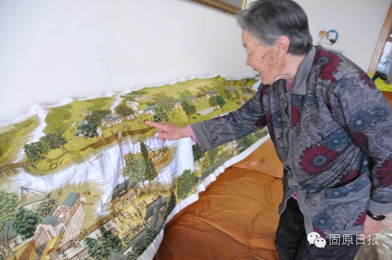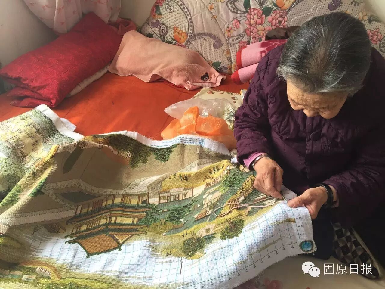 南世英是西吉人,随儿子住在县城。笔者去采访的时候,老人的十字绣“清明上河图”正在收尾。长6米,宽0.7米的刺绣图,茅舍、木桥、流水、老树、商贾、游人、马车等形象栩栩如生。老人一头白发,用最小号的绣花针穿针引线手不抖、气不喘。卧室里到处陈列着十字绣,墙上挂着威风凛凛的老虎,床上整齐码放着各种花型的鞋垫、绣花枕头。