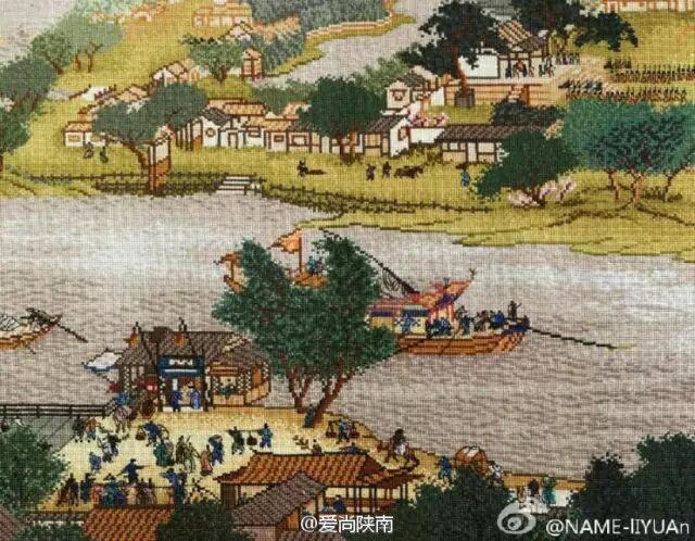 3月28日,汉中网友@NAME-lIYUAn 爆料:家母亲手刺绣6米长《清明上河图》十字绣,纯手工制作,场面宏大壮观,精美~多么心灵手巧的母亲呀~