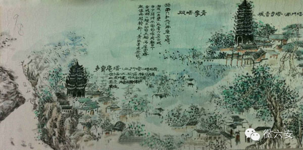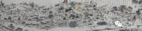六安的“清明上河图”《回望古皋胜景》大雁河、柳树店,双龙桥、龙盘石,九拐十八巷、双塔摩青这些遗址景观,经武继文用国画工兼写的绘画手法,跃然在25米的长长画卷上,再现了古皋城的全景风貌。