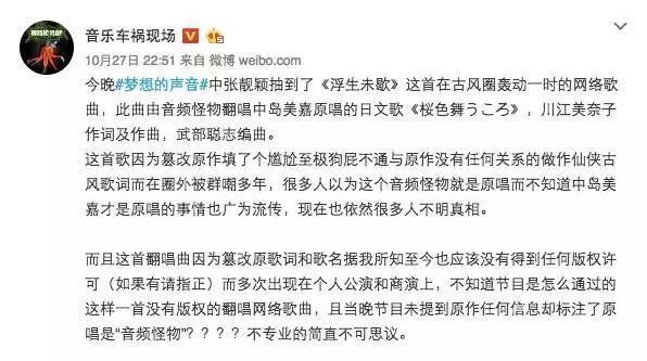 节目组称,选用《浮生半歇》是在通过向音著协(即,中国音乐著作权协会)支付了一定授权费、签署了授权协议的前提下,确认拿到授权才在节目中进行使用的。