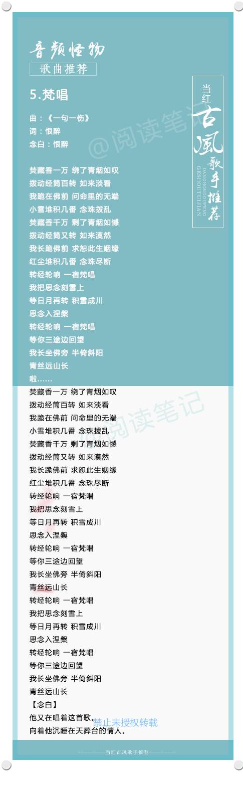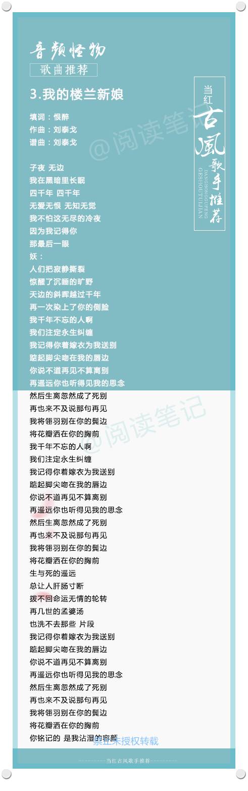 点评丨粉丝投稿 制图丨阅读笔记歌曲资料来源网络 转载请私信获得授权