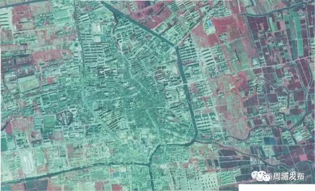 ⑧“1994年周浦镇遥感影像图”,该图同样来源于“天地图”,采用彩红外遥感成像,笔者对已有的镇区范围内遥感图进行整理和拼接。