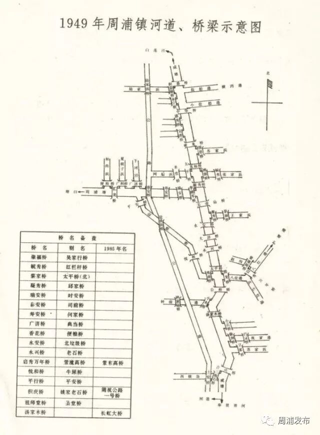 ▲1949年周浦镇河道桥梁示意图(周浦镇誌)