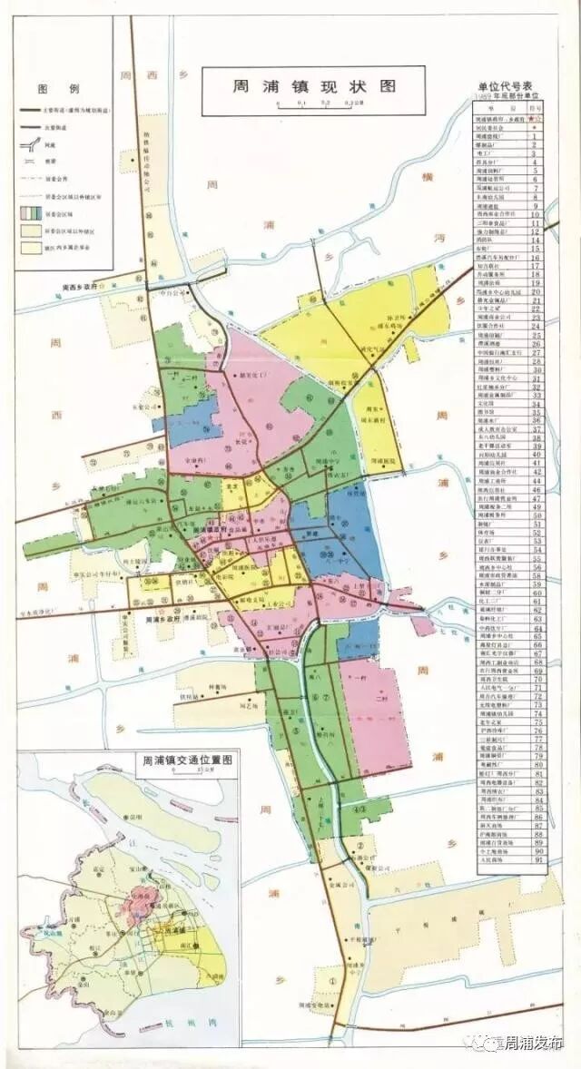 ⑦“1989年周浦镇现状图”,来源于《周浦镇志》(1995年版),此镇志从1983年开始编写,前前后后历经10多年才定稿出版。其中的周浦镇现状图并未标注确切年份,但从该图标注的1989年部分单位和镇志内的文字来看,所反映的应是80年代末和90年代初的周浦镇,该图不仅标注了主次要街道、河流、桥梁、居委会界线、还标注了镇区内的企事业单位和公共服务、基础教育设施等,蕴含的历史资料十分丰富。