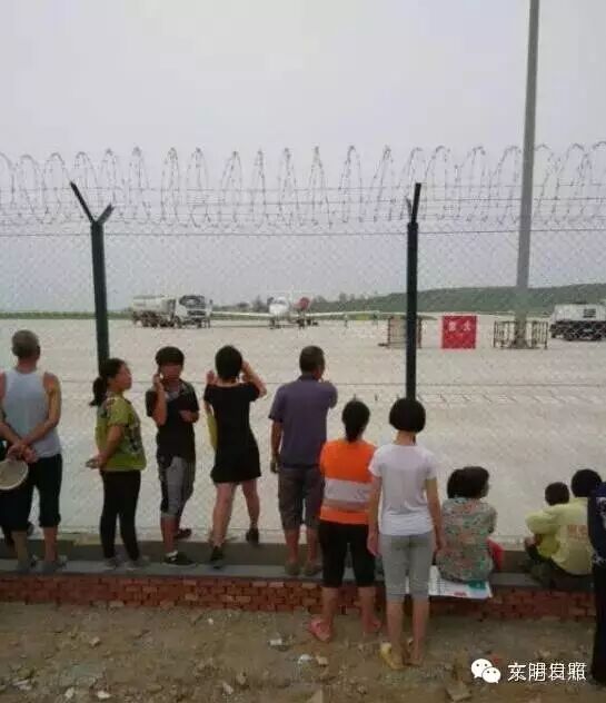 在机场外围观的群众。以前也许那只是我们的飞行梦,可是现在确近在眼前!