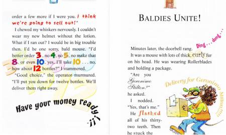 《老鼠记者》的成功还得益于其幽默、生动的插图和极富创意的文本呈现方式。它可是英文原版初级章节书中,为数不多以彩色印刷内页的书哦!