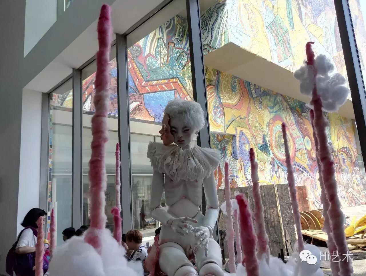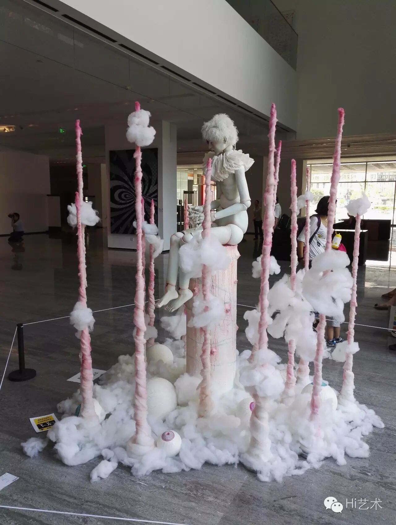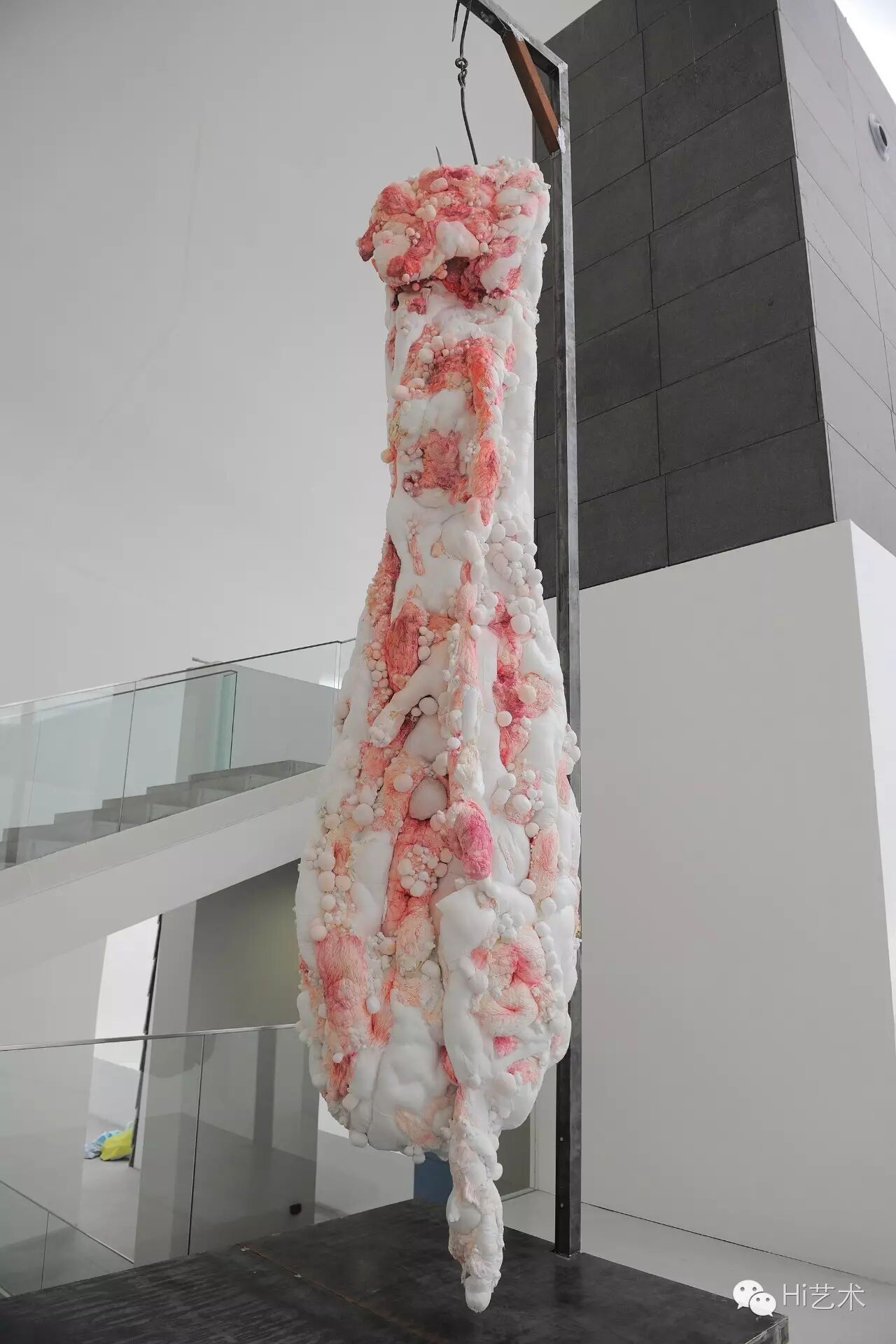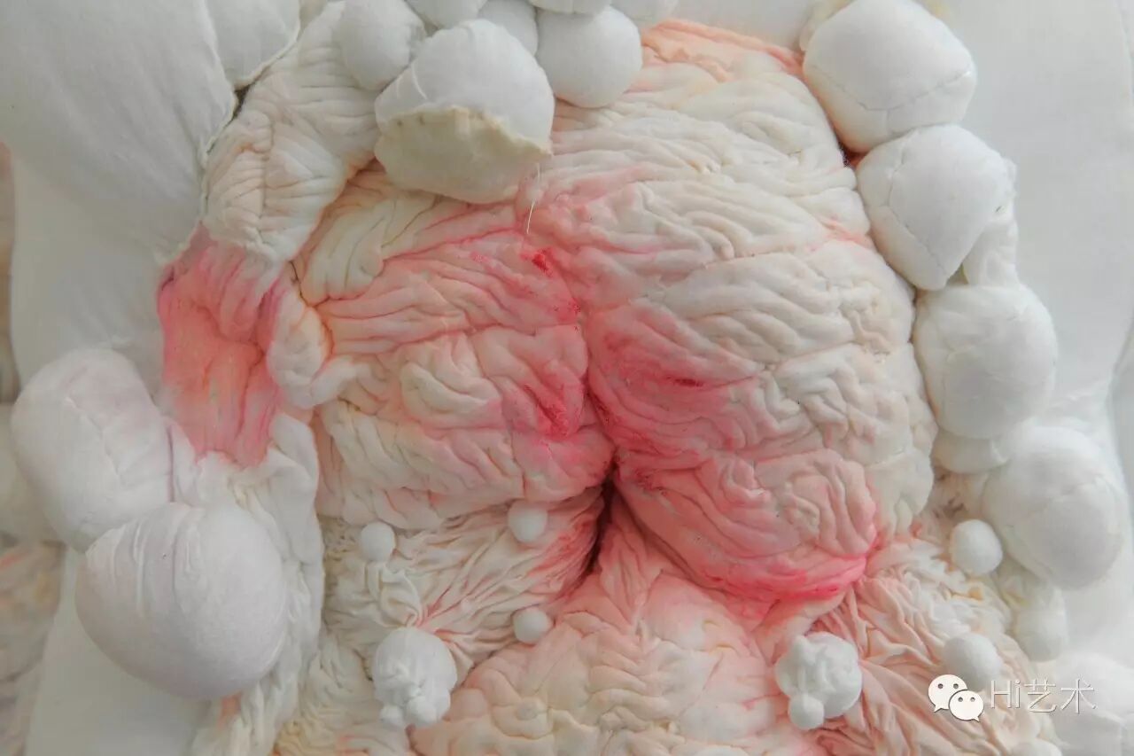 “用现代女性日常卸妆棉缝制出超出正常尺寸的肉块,表达出一种原始的女性能量。”