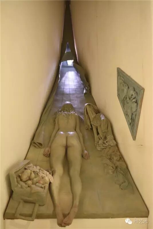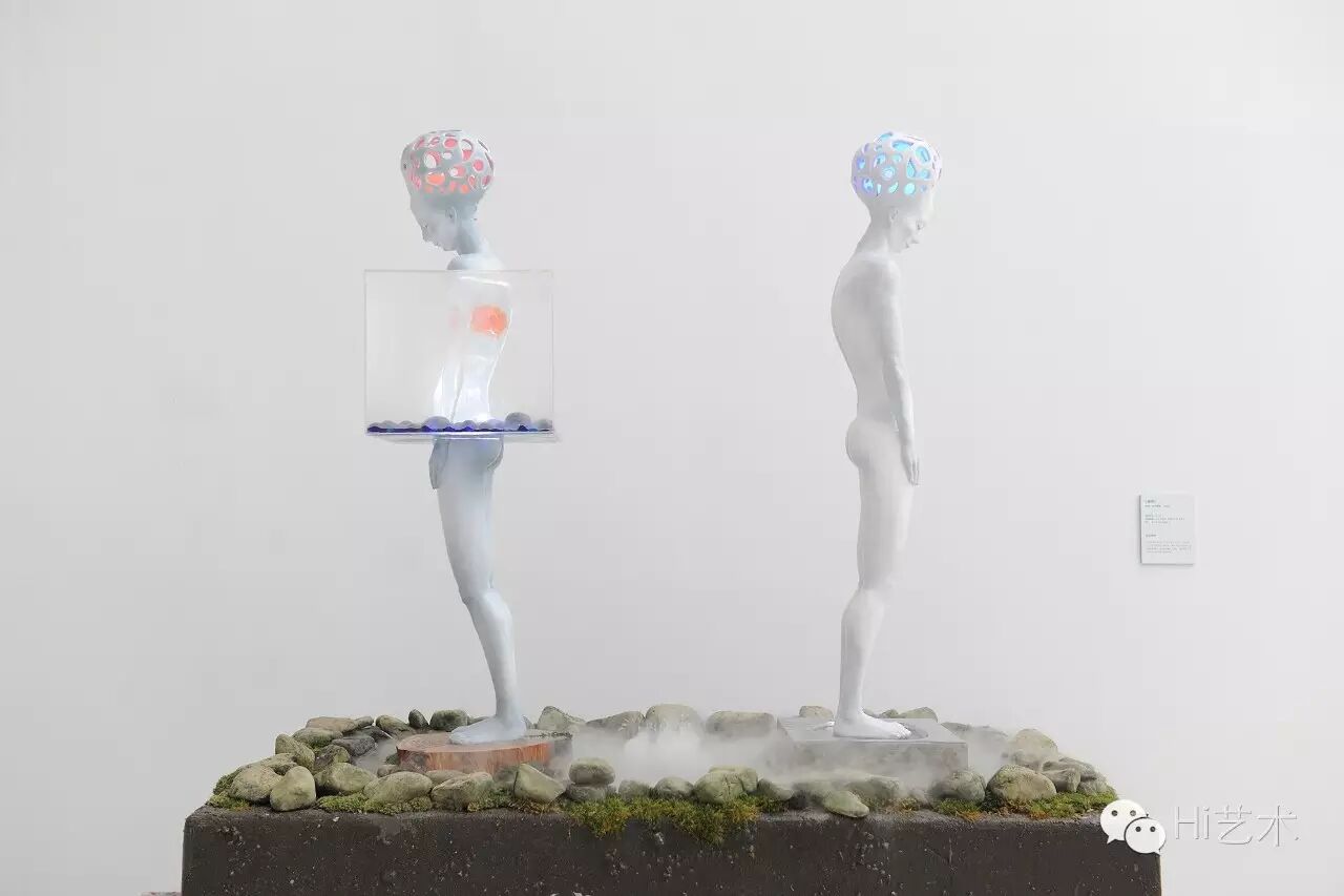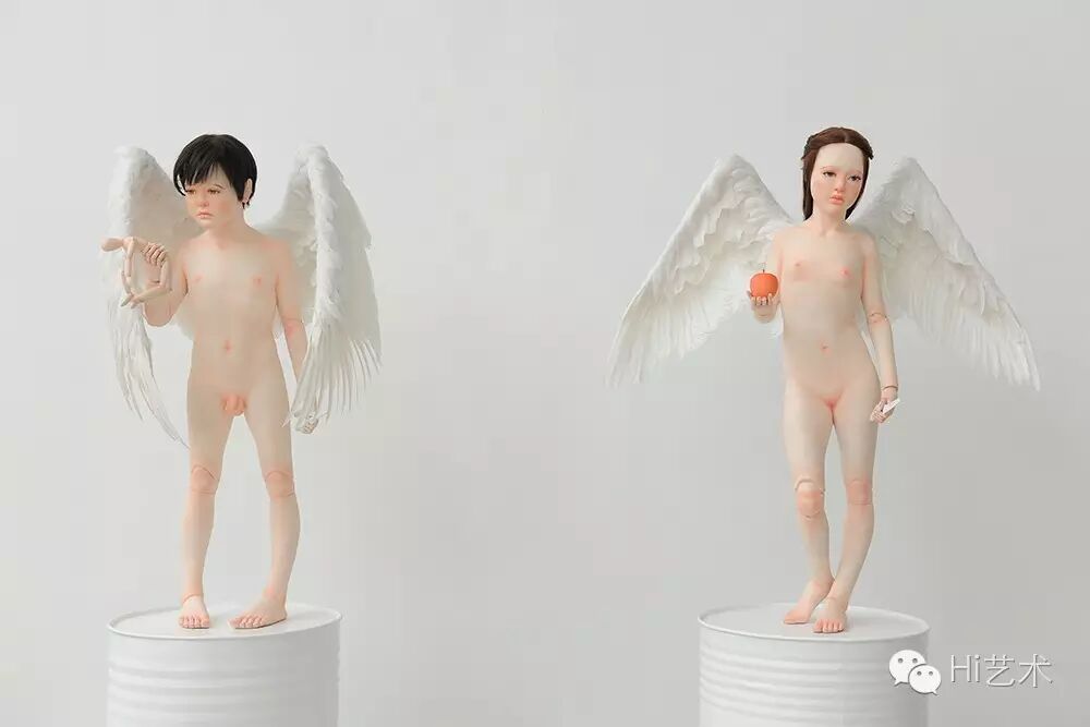 王捷 《新亚当与夏娃》 玻璃钢、头发、天鹅羽毛