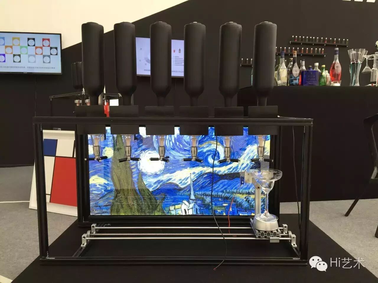 “我采用社会调查的方法,采集人们对艺术作品视觉感受和饮料味觉通感数据,并加以整理分析,设计了一套将图像转化为颜色与味道的算法程序,将不同艺术作品转换成一种混合调制饮品,在展览现场开放‘艺术酒吧’,根据不同艺术作品调制饮品并邀请现场观众体验品尝。”
