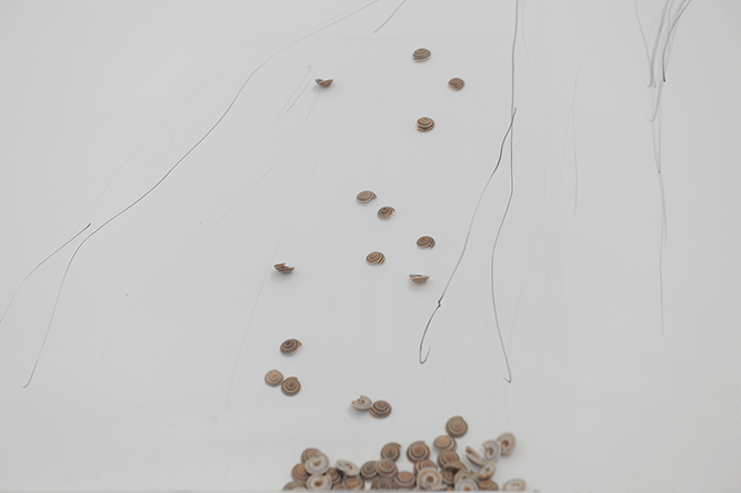 “运用磁铁和动力装置,制作了一个生活轨迹的地图。我将自己比拟为画面中缓慢行进的蜗牛,无论路途再艰难,前进也永不停歇。”