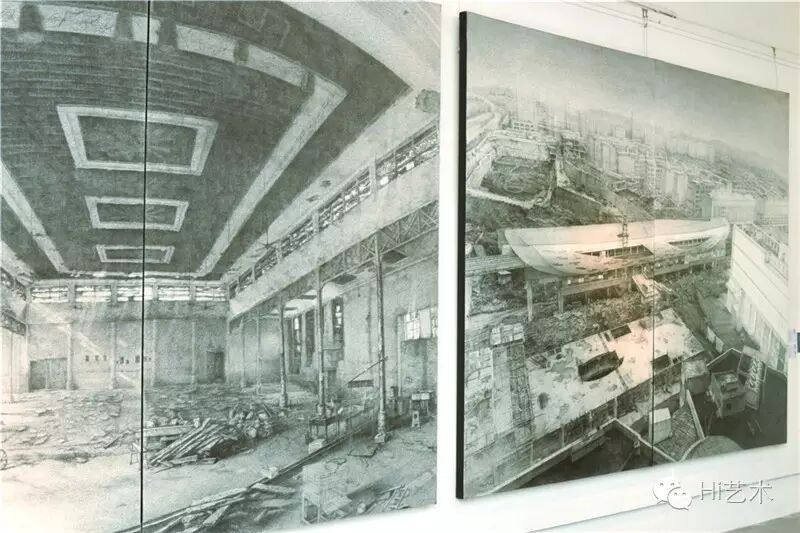 王培永 《老剧院》《X年X月X日》 320×240cm 布面综合绘画