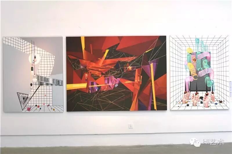 胡楠 《E=mc²·移动》、《E=mc²·守恒》、《E=mc²·静电力》 150×120cm 布面丙烯