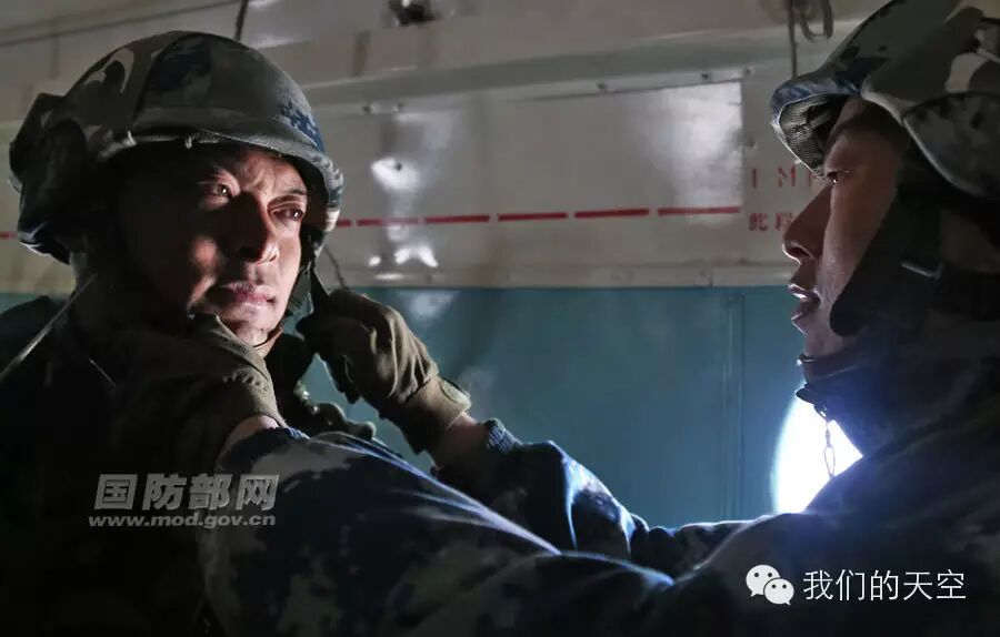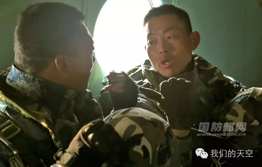 官兵从机舱内鱼贯而出。