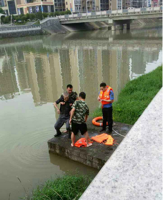 2015年6月7日,在铜鼓定江河水边,有不少市民靠着岸边的栏杆垂钓。突然一位老爷子倚靠的栏杆断裂,老爷子立刻坠入河里,情况万分紧急,因为连续几日的大雨,河水已经变成了洪水。周围的市民纷纷前来相助,最终老爷子在消防队员和110的施救下,救上岸边。
