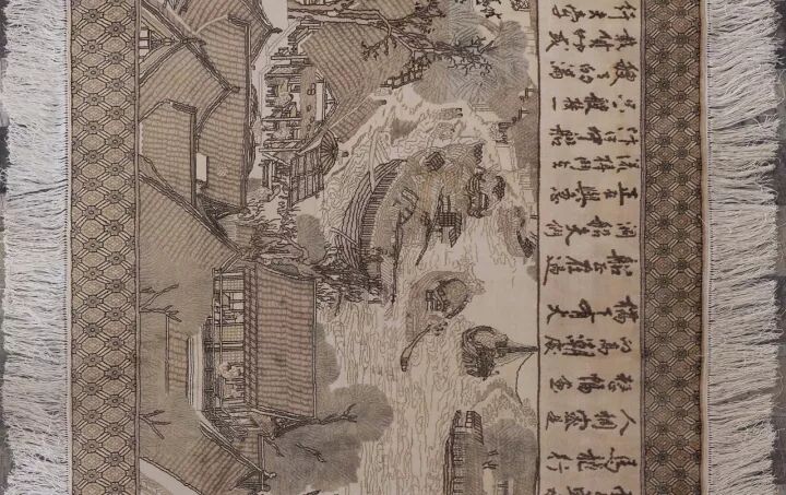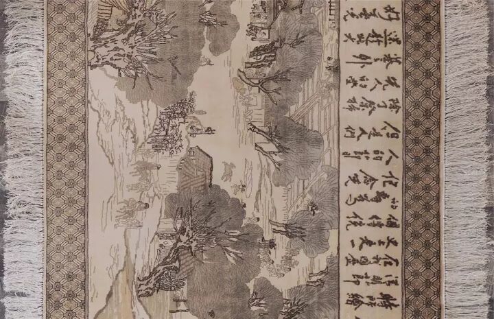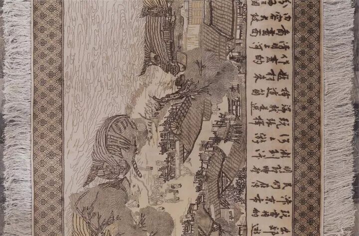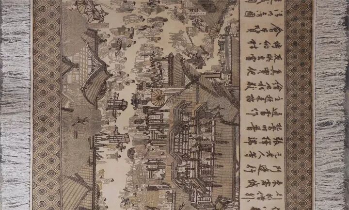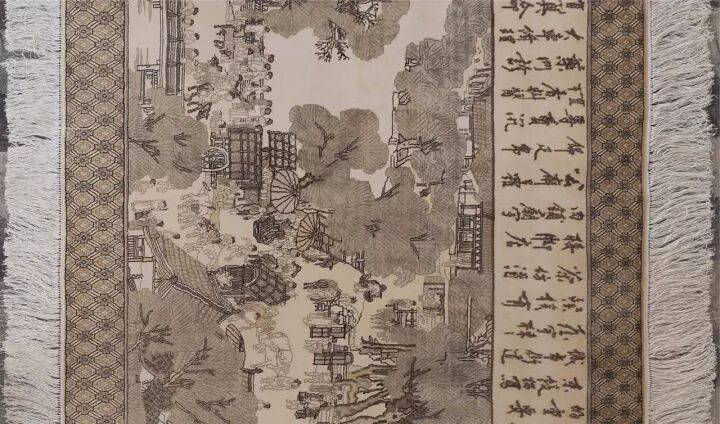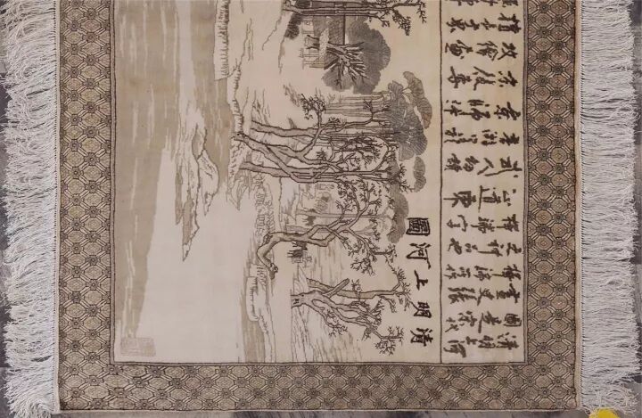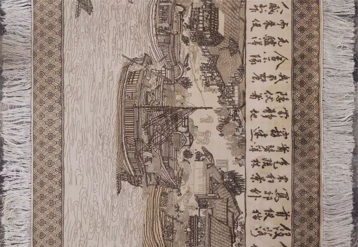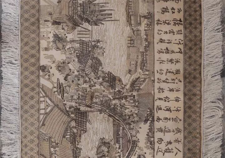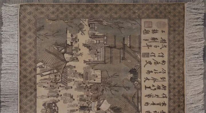 毯面是北宋画家张择端的清明上河图,并且是全图。