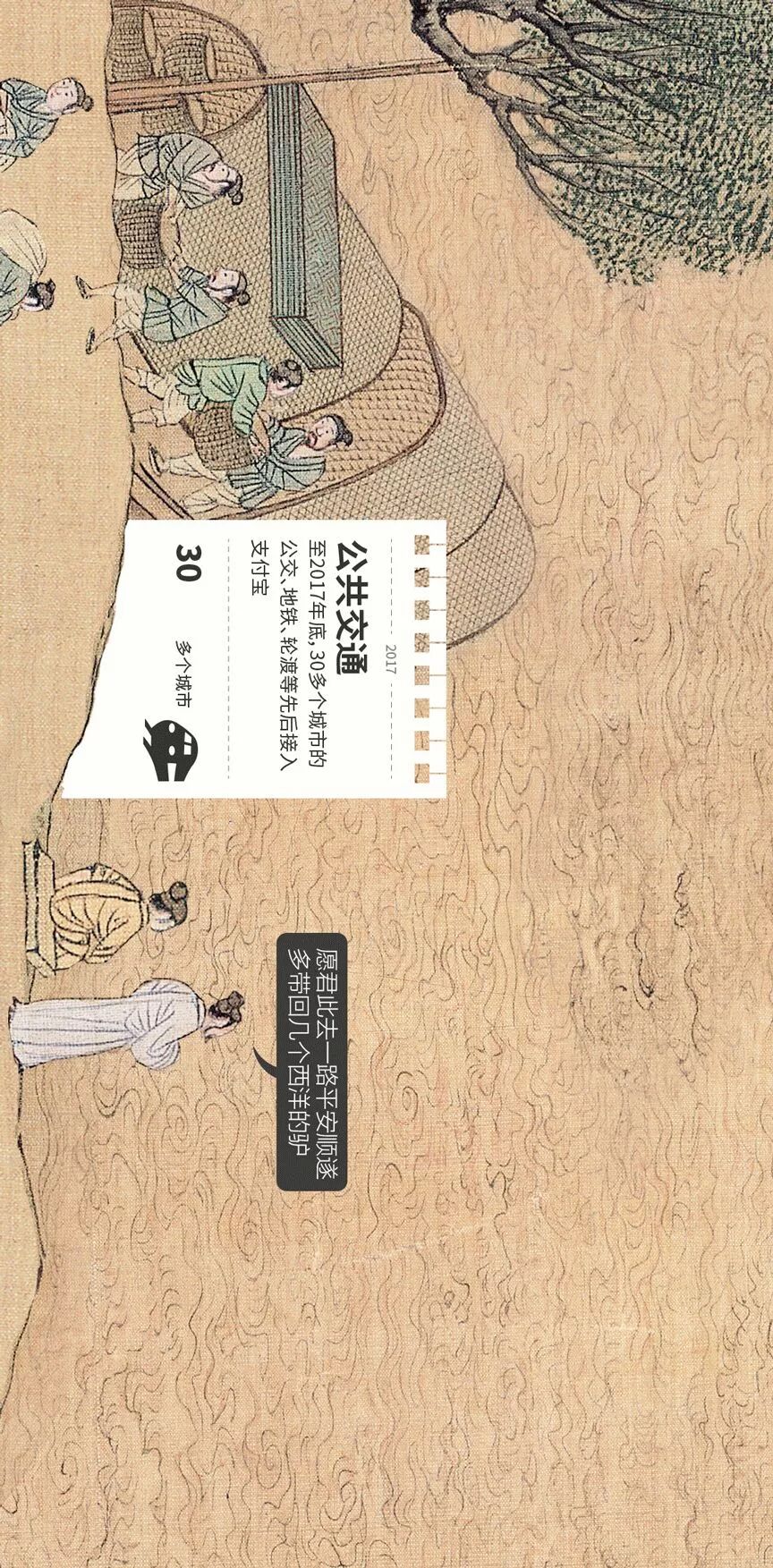这次,全民首富身价3600亿马云的全民账单“支付宝”,别出心裁的根据1540年明代大画家仇英的《清明上河图》创作了一份别致有趣的画卷。