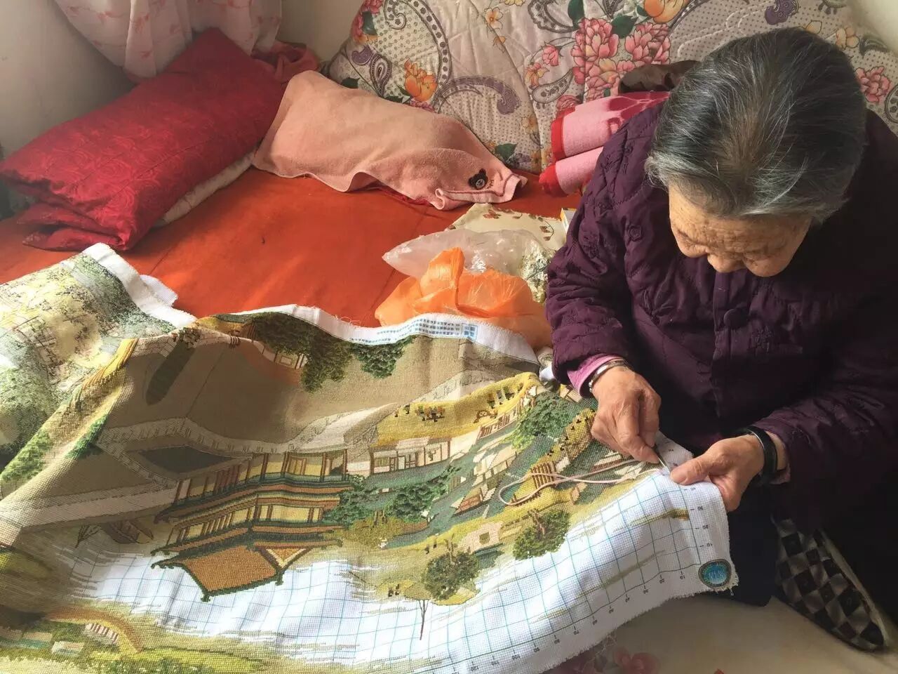 说起自己钟爱的十字绣,老人笑着说:“做每一幅十字绣的时候,都觉得是最后一幅了,所以会赶着时间绣,还要绣得好好的。绣十字绣,给我的生活增添了快乐。”