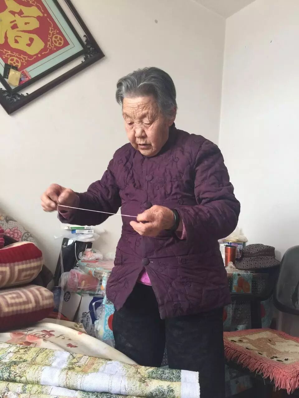 南世英虽已80岁高龄,但耳聪目明,穿针引线灵巧自如。