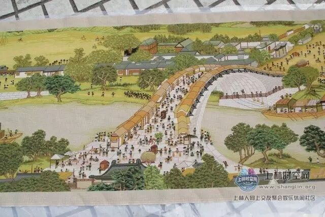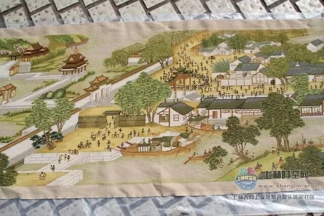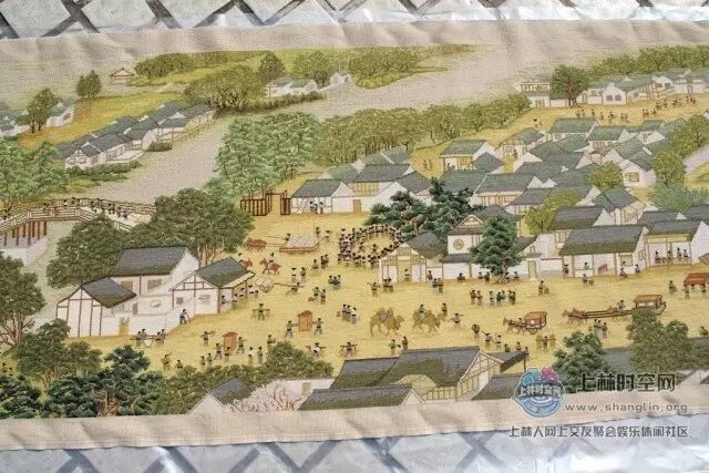 该《清明上河图》十字绣是上林这位开餐馆的老板娘所绣,纯手工绘制,层次丰富,质感古朴,绣品全长22米,宽72厘米,纯棉面料,长绒棉绣线。构图疏密有致,节奏感和韵律变化生动。