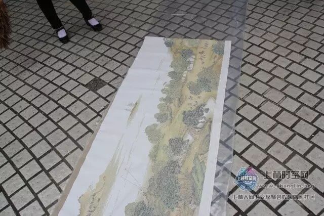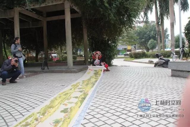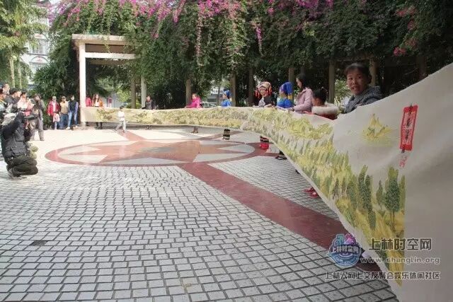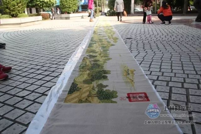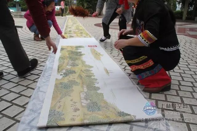 今早,在三区小花园,一幅长达22米、完整的十字绣“清明上河图”亮相在众人面前。