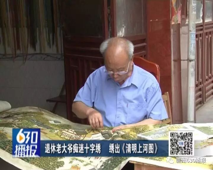 说起绣十字绣,一般都会想到是女同胞干的活,但在瑞金,有一位老大爷退休后迷上了十字绣,而且还绣出了一副《清明上河图》。