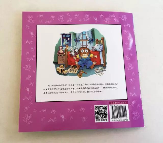 学英语光看书还不够,还需要听和说,很多妈妈在给孩子读英文书籍时,都担心自己的发音不准,而《小怪物》的贴心之处就在于:每本书的封底都有一个二维码,拿起手机轻轻一扫,就可以听到外教用纯正的英文为你讲述小怪物的故事!
