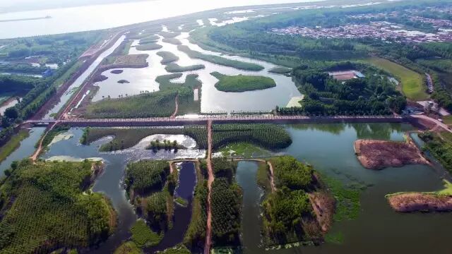 以现状防护林为主构建绿色生态背景,营造禾草丰茂的典型湿地景观。