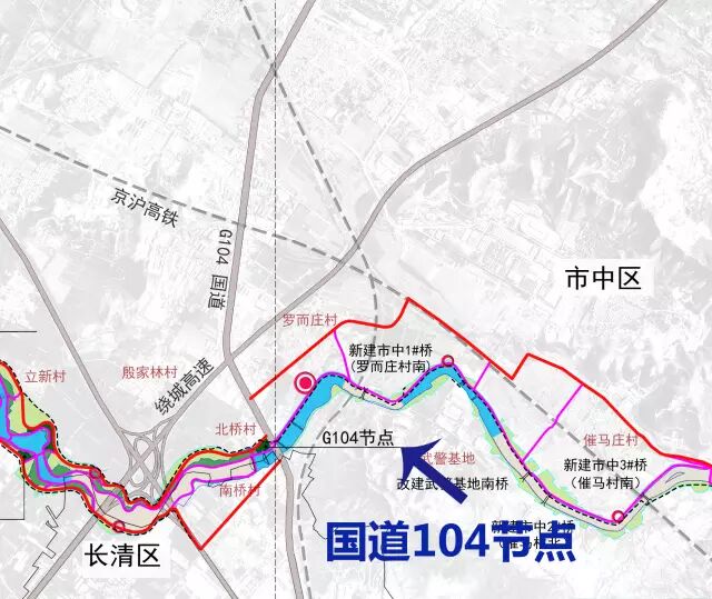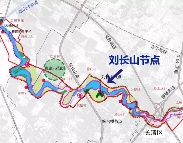 自国道104至国道220长14公里,市民休闲,“碧水回环、绿岛映秀”的生态休闲区。
