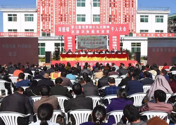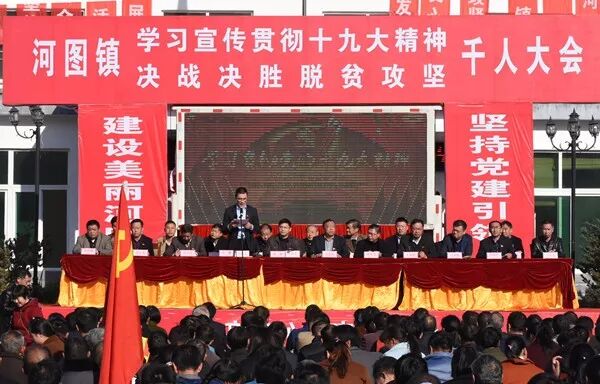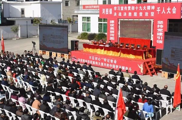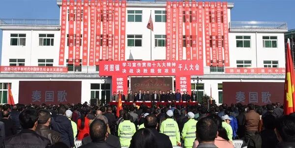 11月15日,河图镇召开“学习宣传党的十九大精神,决战决胜脱贫攻坚千人大会”。来自全镇21个党支部的600多名党员参加了大会。这是全场起立,奏国歌。