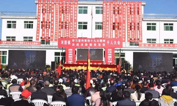 11月15日,河图镇召开“学习宣传党的十九大精神,决战决胜脱贫攻坚千人大会”。来自全镇21个党支部的600多名党员参加了大会。这是大会现场。