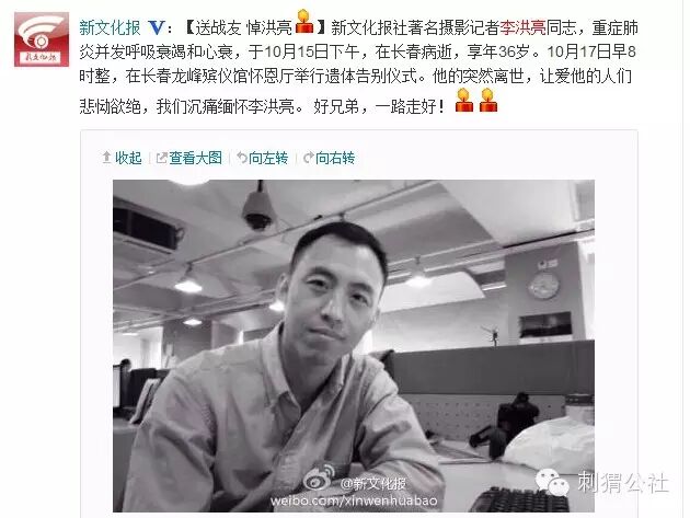 新文化报资深摄影记者,36岁,还没结婚,感冒-肺炎-心衰……李洪亮先生,我们默默的为你祷哀。一路走好……