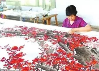 如今,这幅《清明上河图》绣品,,被当做国宝收藏起来了。”王素花开心地说。