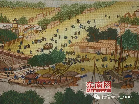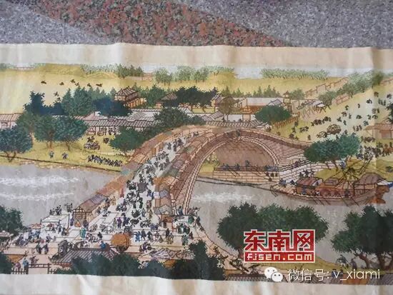 据了解,这副《清明上河图》刺绣总长6米、宽0.8米,需要3个人联手才能展开。(东南网)