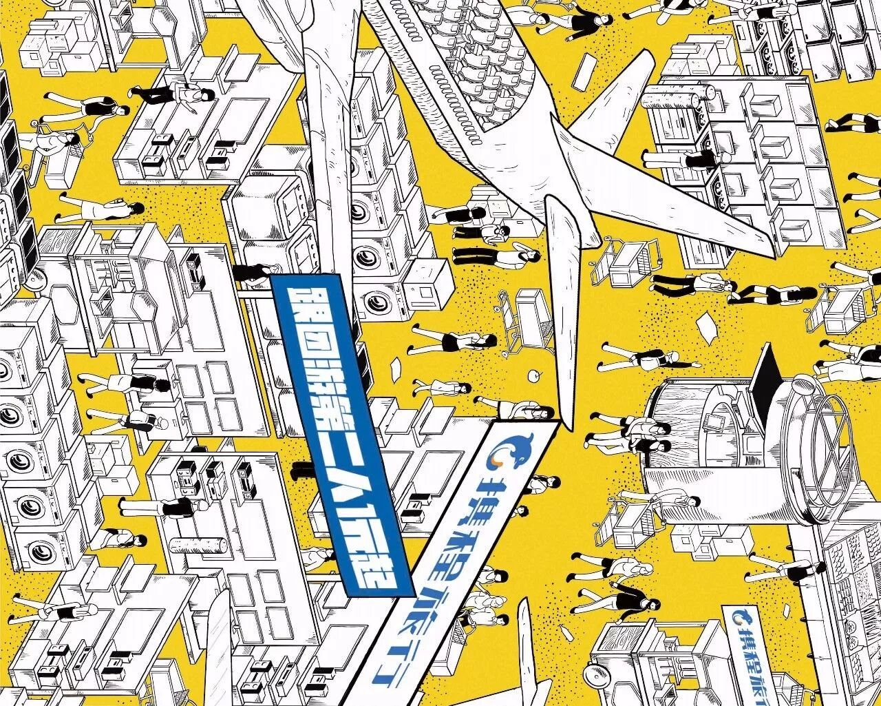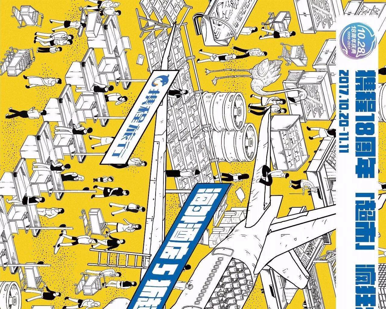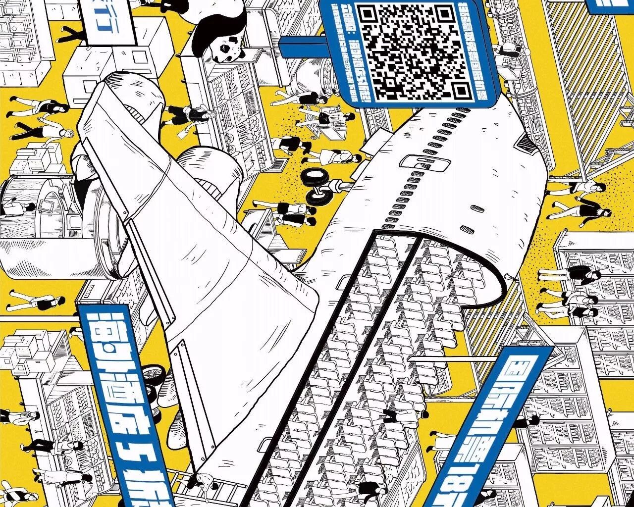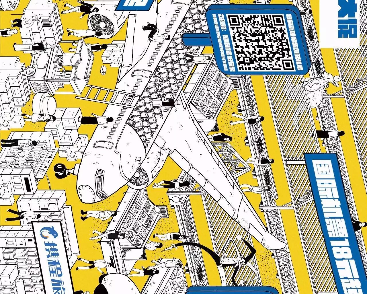 携程的18周年大促,突发奇想,把图上这个场景搬到了地铁里。不仅绘制了这样的一张长图,还在地铁开了个“特卖超市”。