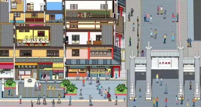 凡益工作室通过太平街上的生活提取出街巷上的场景与故事,让街区的文化注入老街,以释放其当今的时代印记,不再是单纯的记录而更多的是整理,提炼与加工,烘托出这个伟大城市的细腻与舒缓,新潮与亲切。建筑师通过绘本将生活再次演绎,打破大众对“固化标准”的理解。