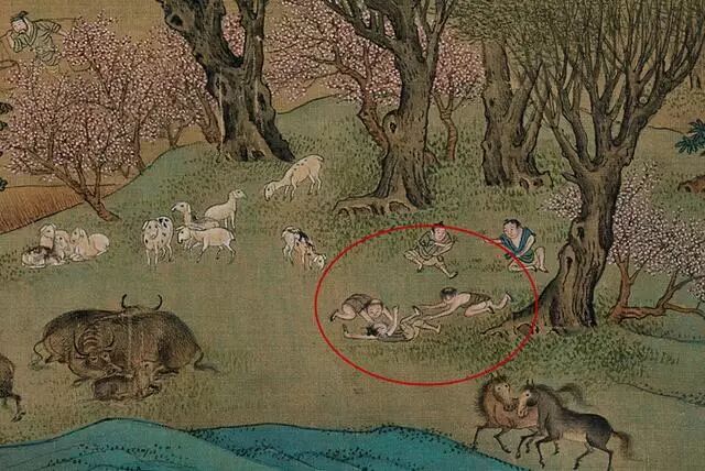 有几个放牧的熊孩子无事可做,于是人一闲,索性打起了架来。