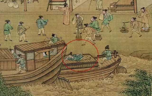 还是仇英本《清明上河图》中的这哥们比较斯文,无聊了也不瞎胡闹,躺下睡觉呗。只是不知道兄弟在想些啥,这睡姿。