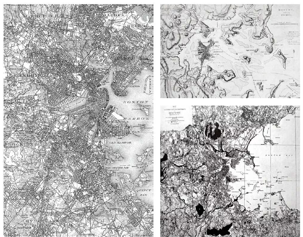 图4-2 19世纪末波士顿地图:填平海湾,铲去丘陵,城市蔓延到整个湾区[7](左图)