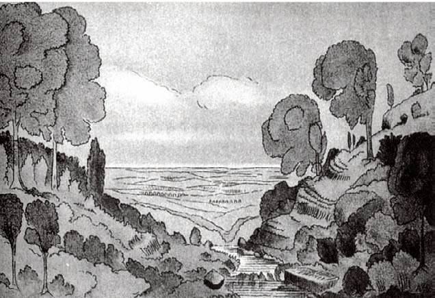与当时流行的自然景观是原生状态的,不能有任何改变的观点针锋相对,埃里奥特认为风景是为公共利益恢复和再利用的土地,城市区域中的风景面对发展浪潮可以进行一定的改造以适应公共使用。他经常采用雷普顿式“前”“后”绘画分析强调了风景经过仔细分析和良好规划后改进的可能性(图8)。这类分析通常以区域的地质、地形和利用历史分析为开始,然后是对每个公园区块的发展总体规划,尤其重视公园区块之间便捷的交通联系[3]。